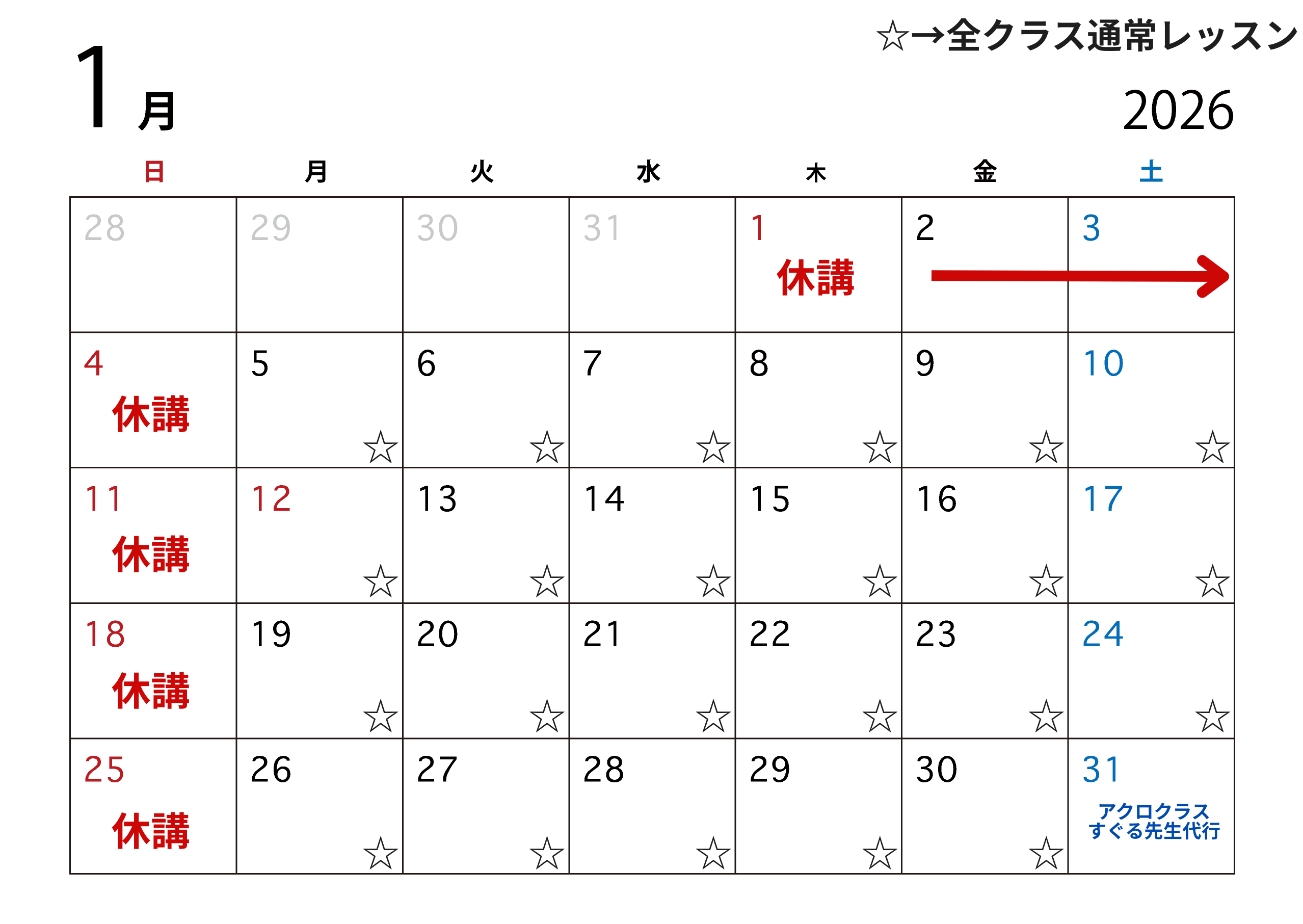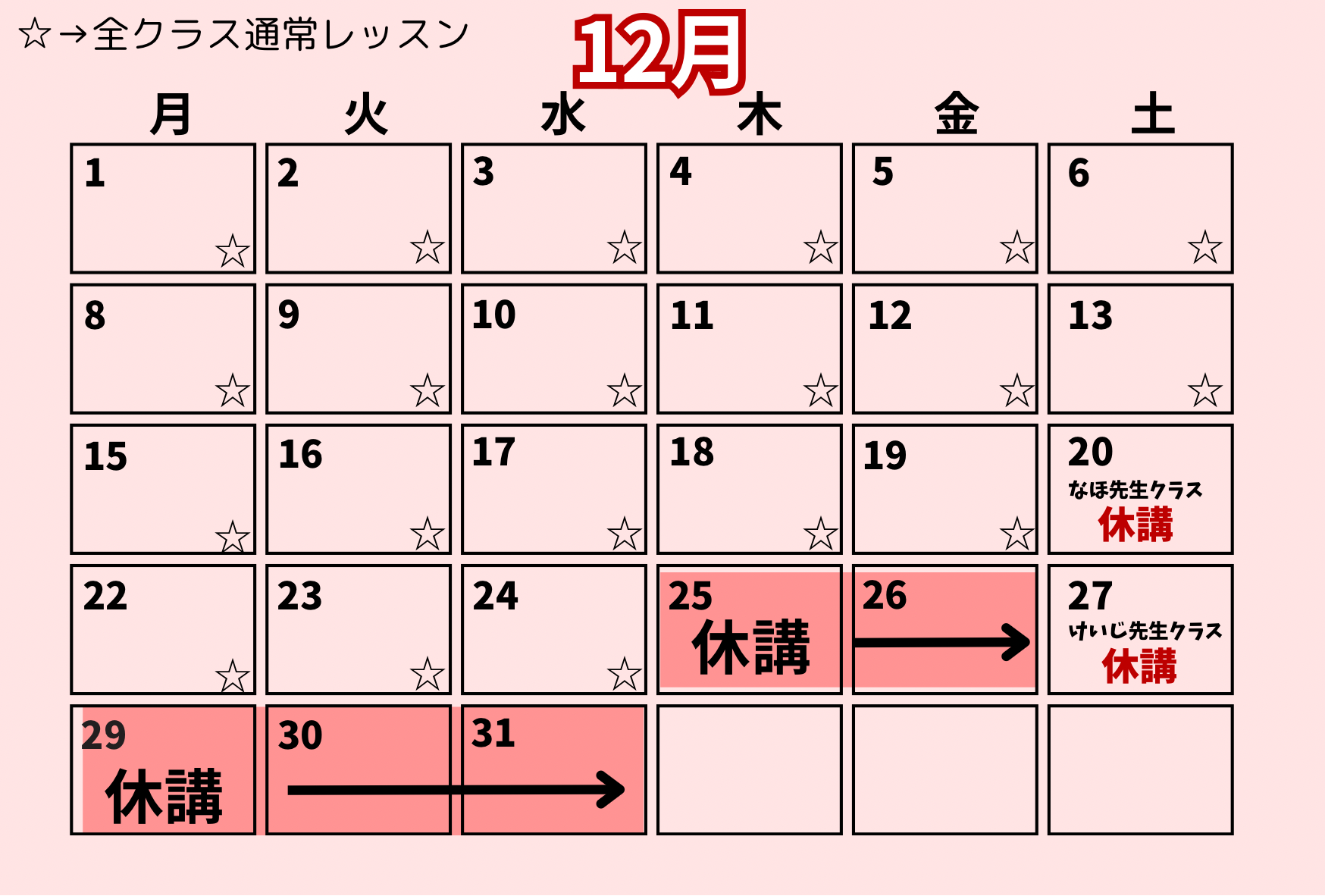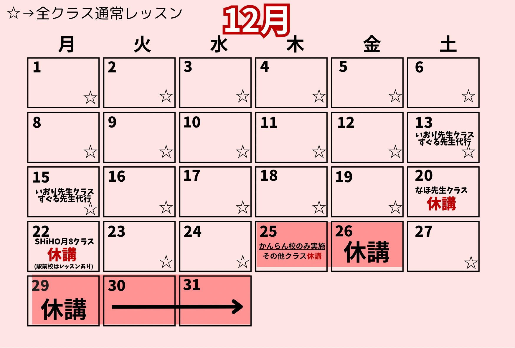 ・Ti-ccha土曜全クラス・ioriクラス 休講
