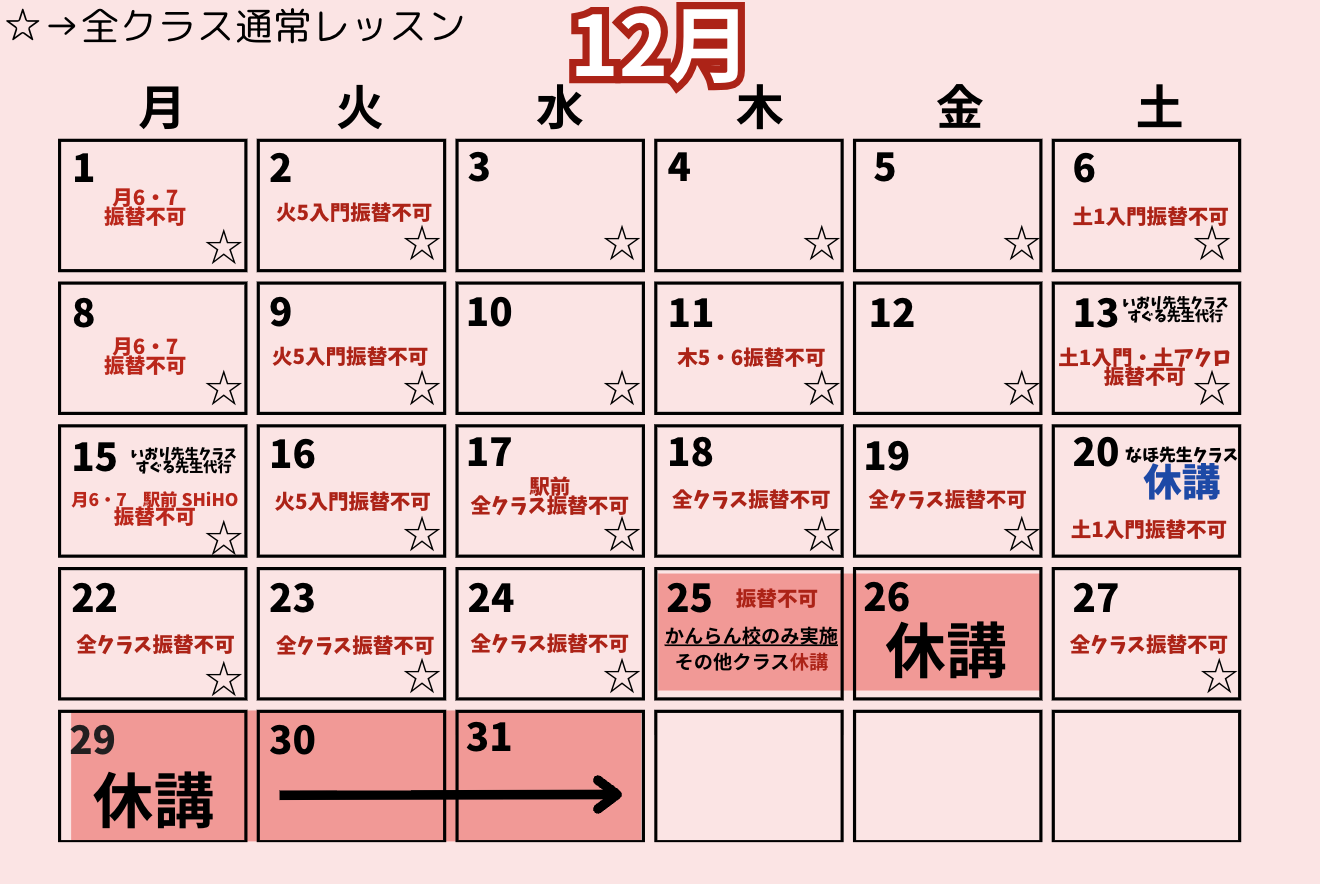 11月25〜29日、公式ラインへ振替希望クラスをお送りください。